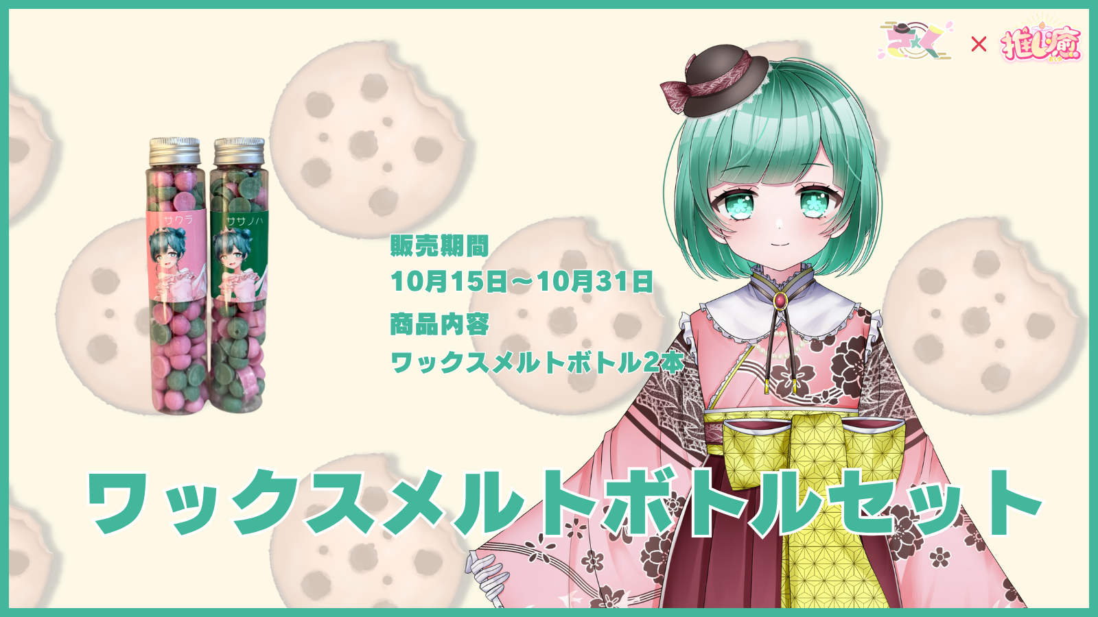 オリジナルキャンドルのピンクカラーをパステルピンク、緑カラーをライトグリーンに変更してお届けいたします。